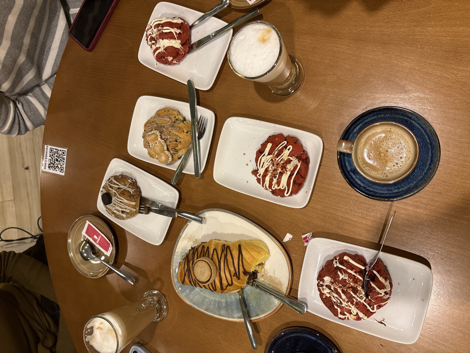 - "The image displays an overhead view of a wooden cafe table in Salamanca, Spain, laden with desserts and beverages" by FM-Y5o3W2, licensed under CC BY 4.0