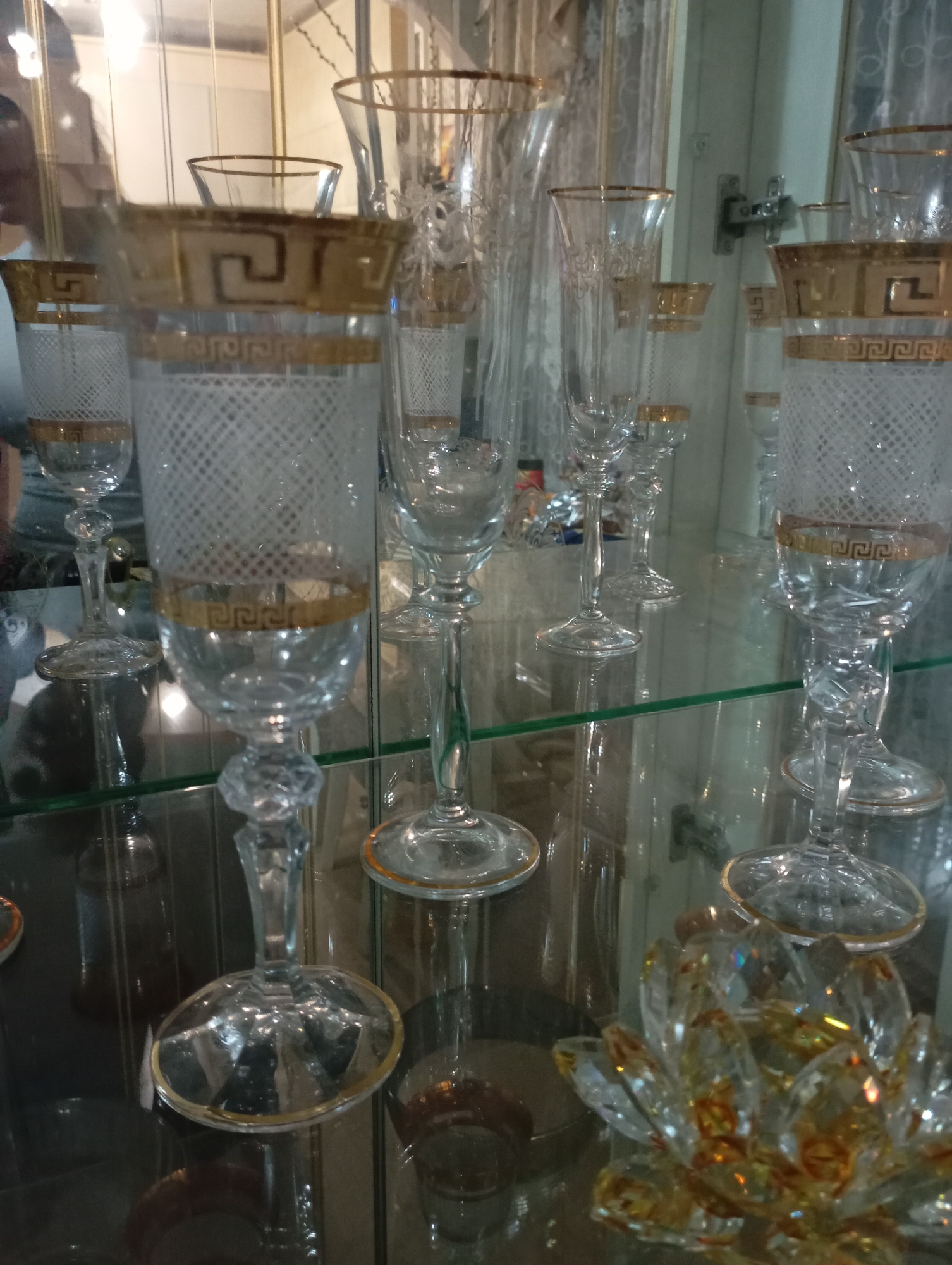 - "This image, captured in Armavir, Russia, depicts a detailed view inside a display cabinet featuring various clear glass goblets and drinking glasses" by FM-KPJIy1, licensed under CC BY 4.0
