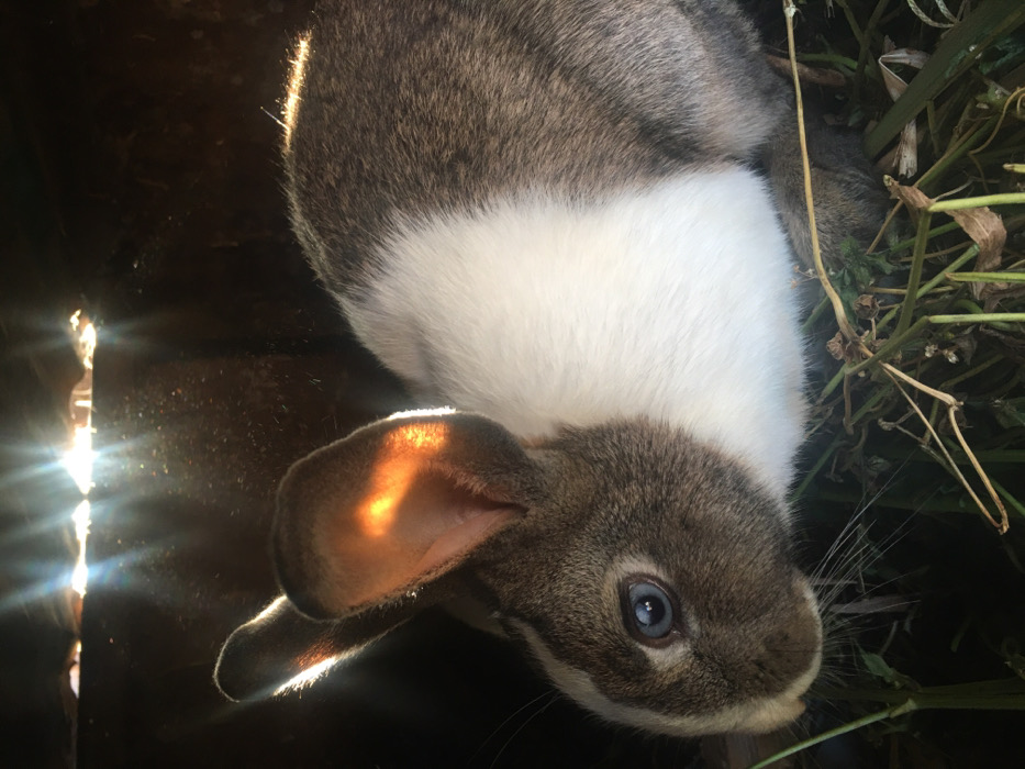 - "A rabbit with gray and white fur rests partially in sunlight, casting a warm glow on its ear" by FM-3ILLF2, licensed under CC BY 4.0