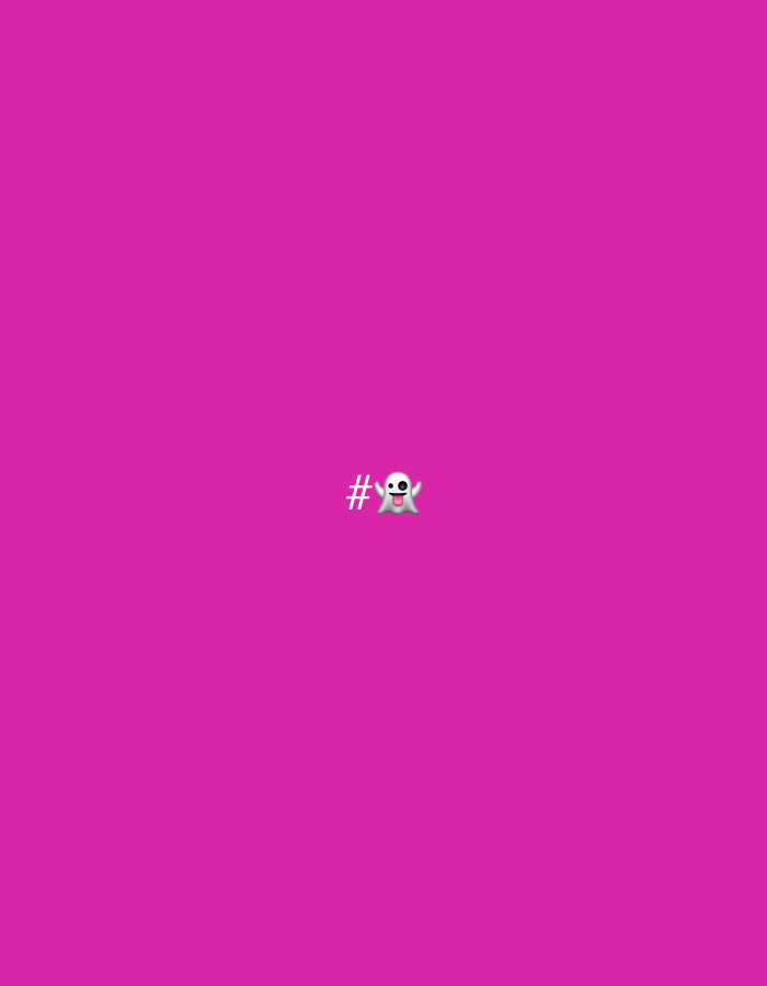 The image displays a solid magenta background. Centered horizontally and vertically are two digital symbols: a white hash symbol (#) immediately followed to its right by a white ghost emoji (👻). The ghost emoji features black eyes and an open mouth with a pink tongue extending to its left. No people, complex subjects, objects, actions, or interactions are depicted. The scene is a digital graphic and does not represent a physical location within the city of Raanana, Israel, or any other geographical area.
