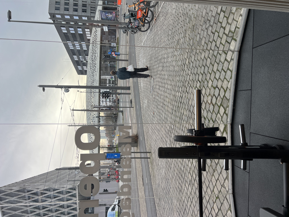 - "The image captures an urban street scene in Antwerp, Belgium, specifically the **Kievitplein area near Antwerpen-Centraal train station**, viewed from inside a building through a large glass facade" by FM-AuMyu1, licensed under CC BY 4.0
