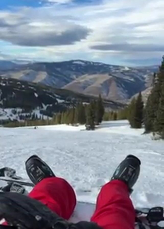- "A person is sitting on a snowy mountain slope wearing red ski pants and ski boots" by FM-8uZDn2, licensed under CC BY 4.0