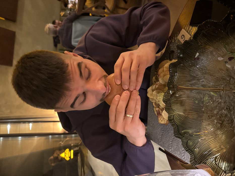 - "A male individual with short dark hair and a light mustache, wearing a dark purple hooded sweatshirt, is depicted taking a bite from a hamburger" by FM-uEVzD3, licensed under CC BY 4.0