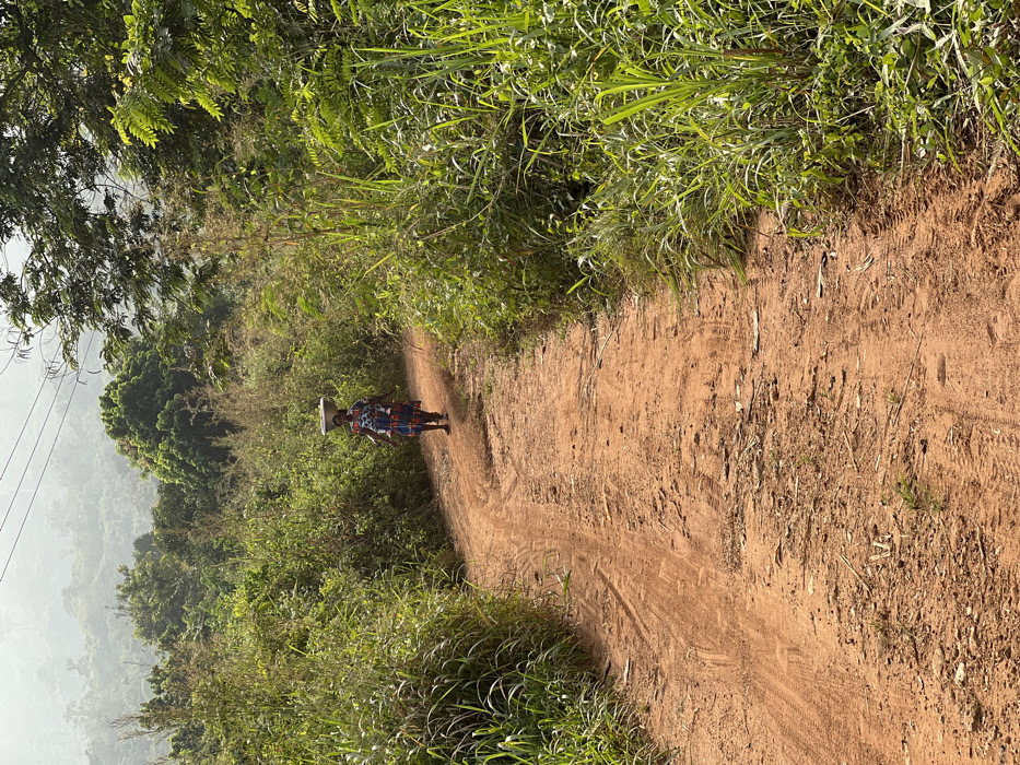 - "A full-frame image depicts a rural scene in Woadze, Ghana, featuring a woman walking away from the camera on a reddish-brown dirt road that curves slightly to the left" by FM-6dzJp2, licensed under CC BY 4.0