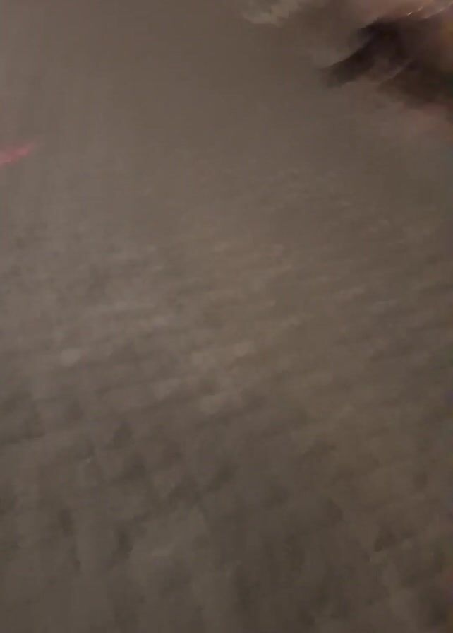 person walking at night on a brick sidewalk. The person is wearing dark pants and sneakers. The sidewalk is paved with gray bricks in a herringbone pattern. A car is parked partially on the sidewalk. There are streetlights illuminating the sidewalk and buildings. The video is shaky.