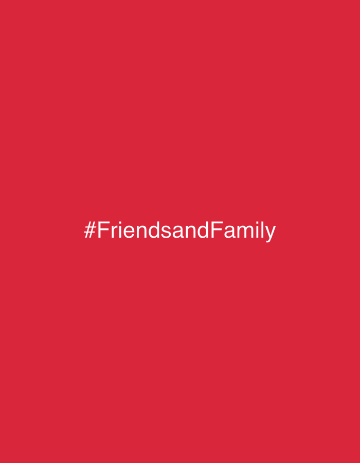 The image displays a solid, uniform red background. Centered on this background, the white text '#FriendsandFamily' is digitally rendered. No people, subjects, objects, actions, interactions, or environmental details are depicted within the frame of the image. The image provides no visual information regarding the city of Ban Ko Li Pe, Thailand, or any specific geographical location.
