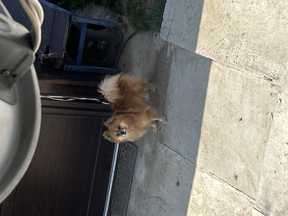 - "A small, light brown Spitz-type dog, possibly a Pomeranian, stands on a light gray concrete surface in an outdoor setting in Verinsko, Bulgaria" by FM-zKxrm1, licensed under CC BY 4.0