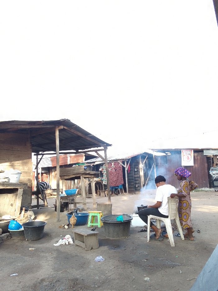 - "This image depicts an outdoor, unpaved area within the City of Unknown, Unknown, featuring multiple rustic wooden structures with corrugated metal roofs" by FM-ykStB2, licensed under CC BY 4.0