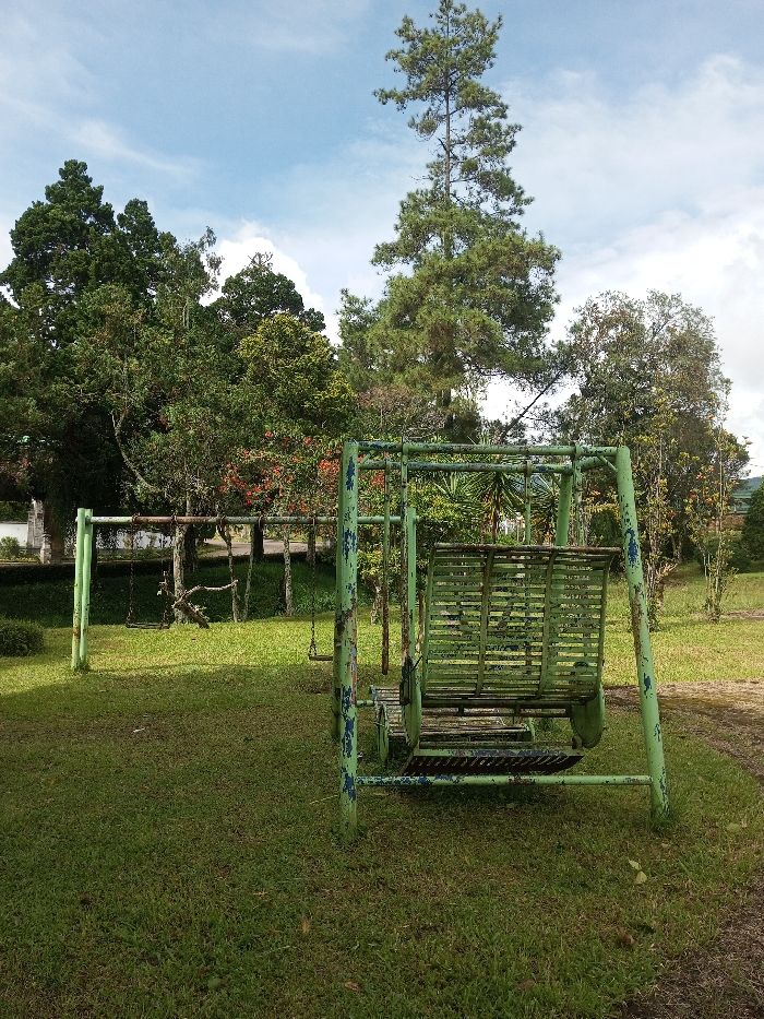 - "A park scene features weathered, light-green swing sets on a grassy lawn" by FM-YpPV53, licensed under CC BY 4.0