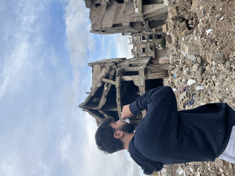- "A young adult male stands amidst extensive urban destruction in Joubar Municipality, Syria" by FM-NiDCC3, licensed under CC BY 4.0