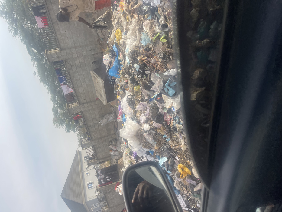 A large accumulation of mixed refuse is observed in an outdoor setting in Gwarinpa, Nigeria