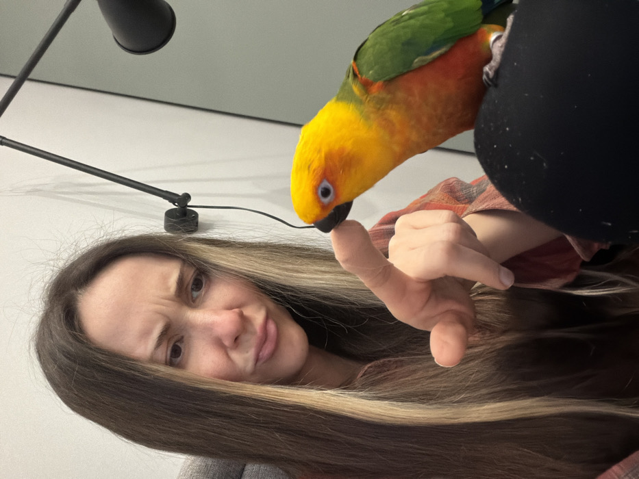 - "This image, captured indoors in Khimki, Russia, displays a close interaction between a female subject and a bird" by FM-e1BLf2, licensed under CC BY 4.0