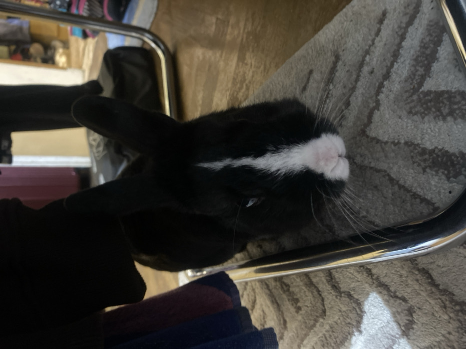 - "An indoor scene in Gabrovo, Bulgaria, presents a black-and-white rabbit resting on a patterned rug" by FM-ovG4h2, licensed under CC BY 4.0