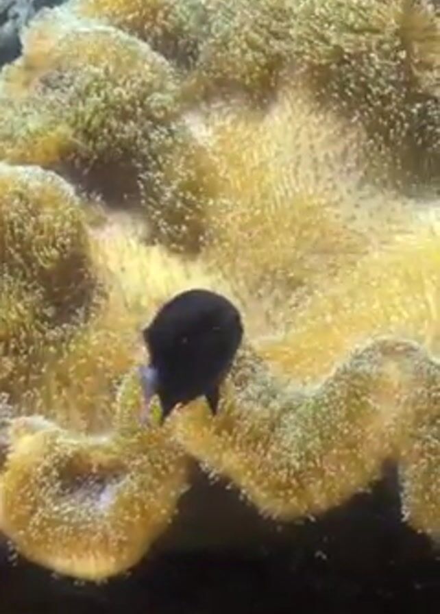 - "small black fish swimming around a large, tan-colored sea anemone" by FM-yjK1X2, licensed under CC BY 4.0