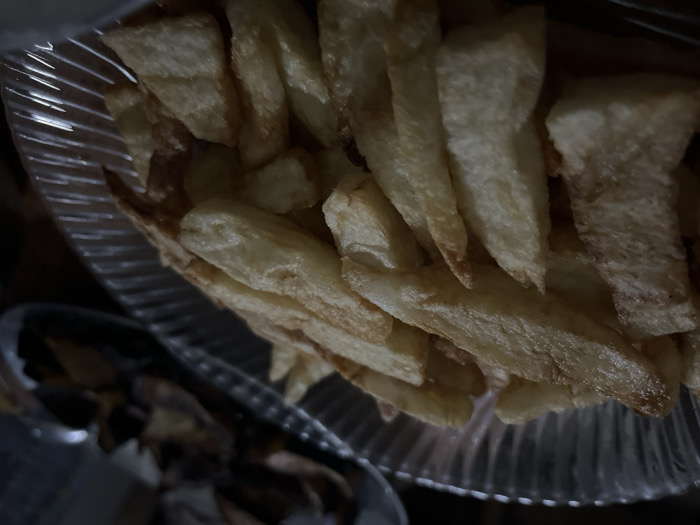 - "A close-up captures a clear bowl overflowing with thick-cut, golden-brown french fries" by FM-QTxZm1, licensed under CC BY 4.0
