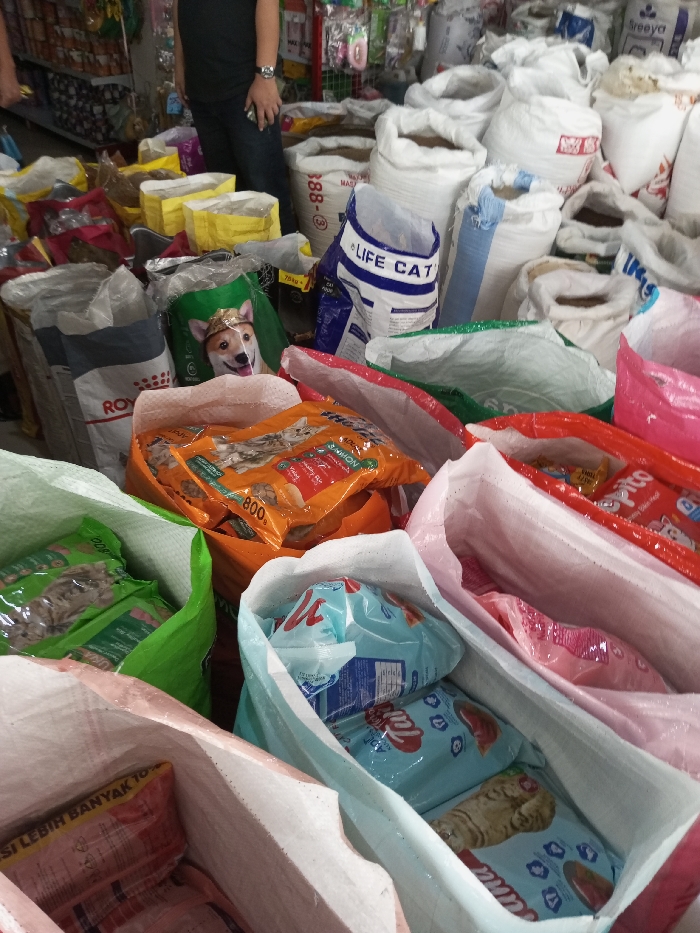 - "The image depicts an indoor commercial or storage space in Taohom, Laos, densely packed with numerous bags and sacks of animal feed, primarily pet food" by FM-1M4q23, licensed under CC BY 4.0