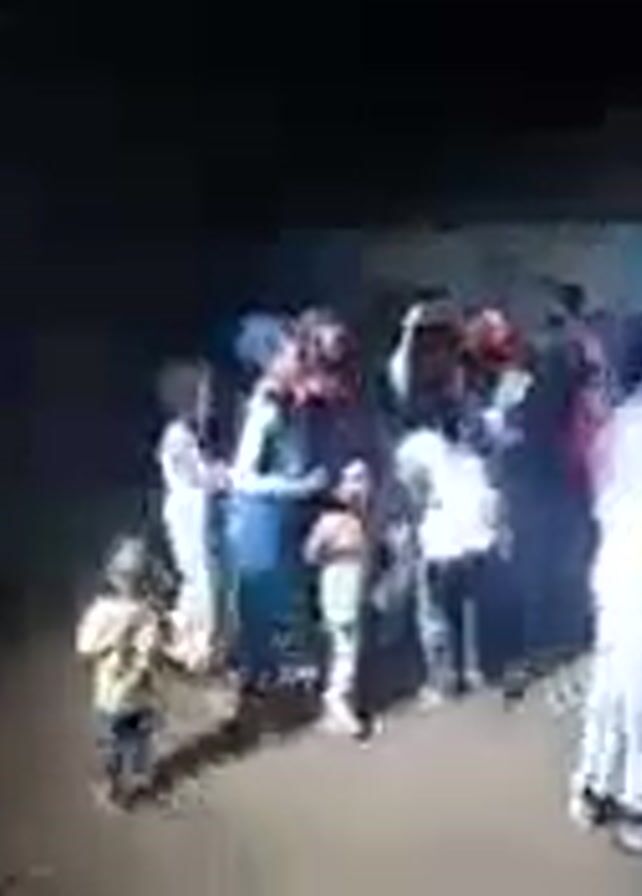 The video appears to show a group of people gathered outdoors, possibly at night or in a dimly lit area