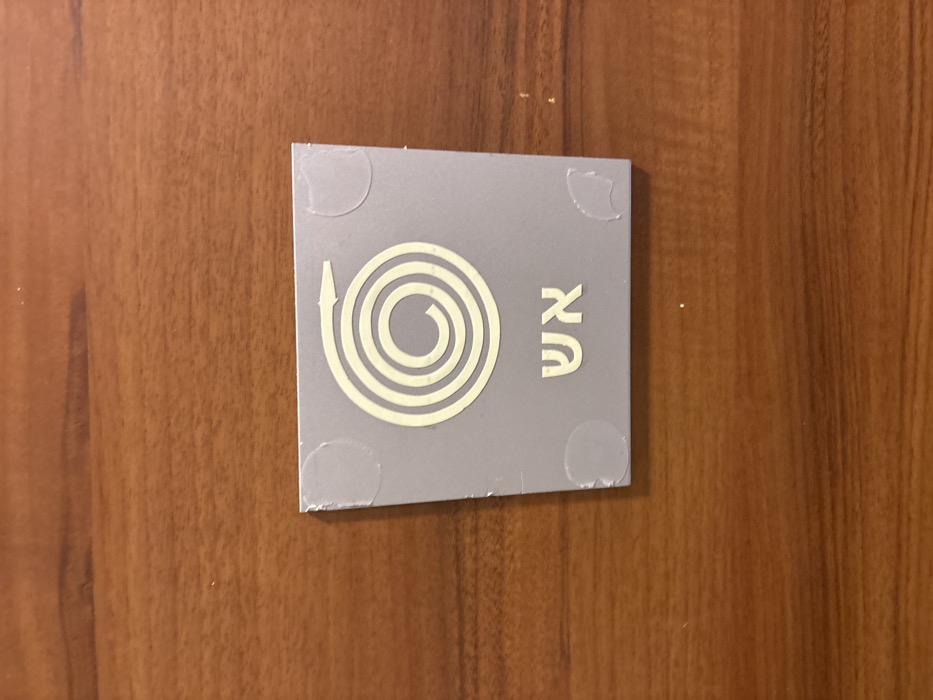- "A rectangular, grey informational sign is affixed to a smooth, reddish-brown wooden surface, likely a door or wall panel, within a building in Eilat, Israel" by FM-tcIO92, licensed under CC BY 4.0