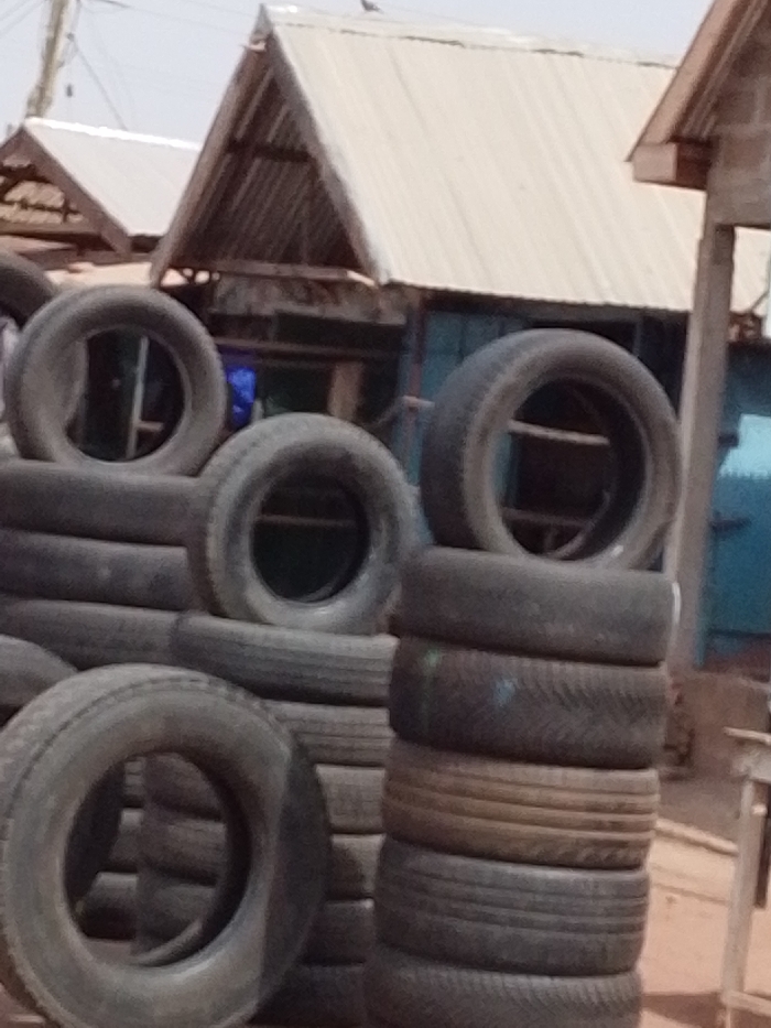 - "The scene, located in Sabaa, Ghana, depicts an outdoor collection of numerous used vehicle tires" by FM-2KSU42, licensed under CC BY 4.0