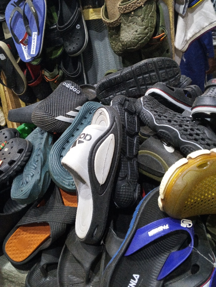 - "A disorganized heap of footwear, mostly sandals and clogs, fills the frame" by FM-f9W8F3, licensed under CC BY 4.0