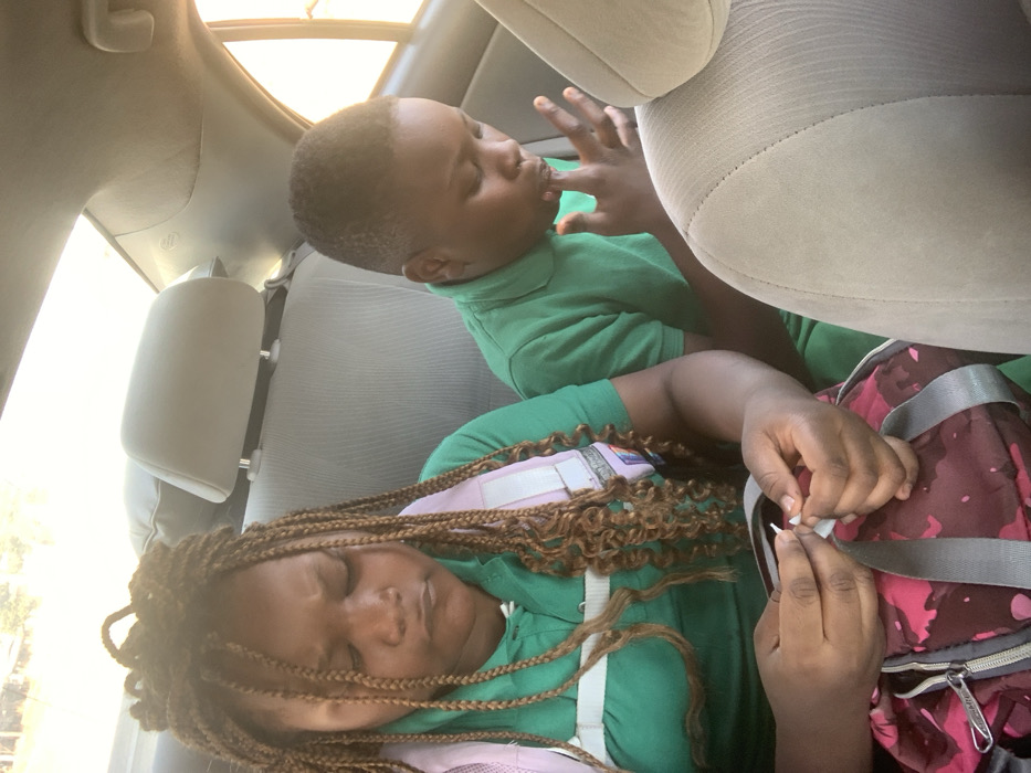 Two children are observed in the back seat of a vehicle in Kurudu, Nigeria