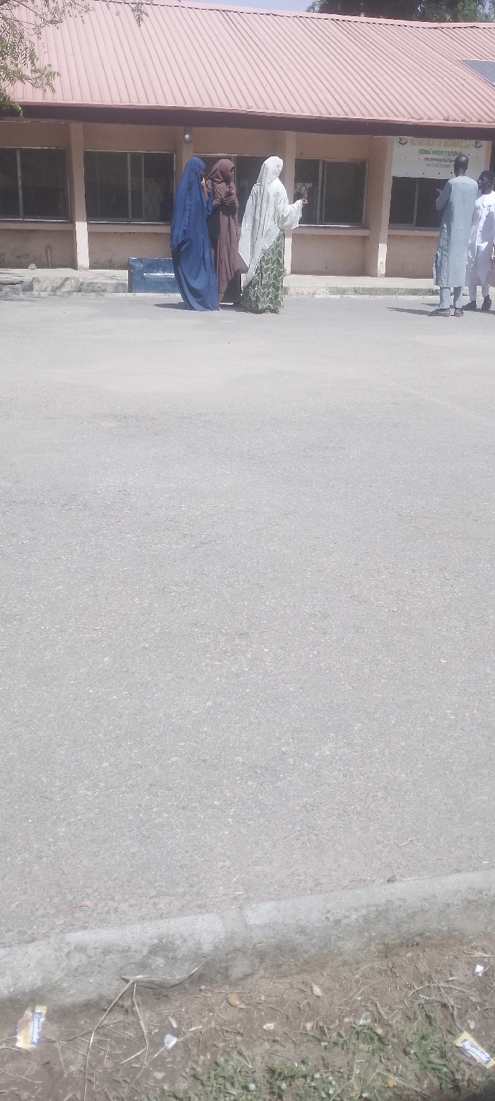 This image depicts an outdoor scene at the Federal University Dutse-N campus in Dabawa, Nigeria