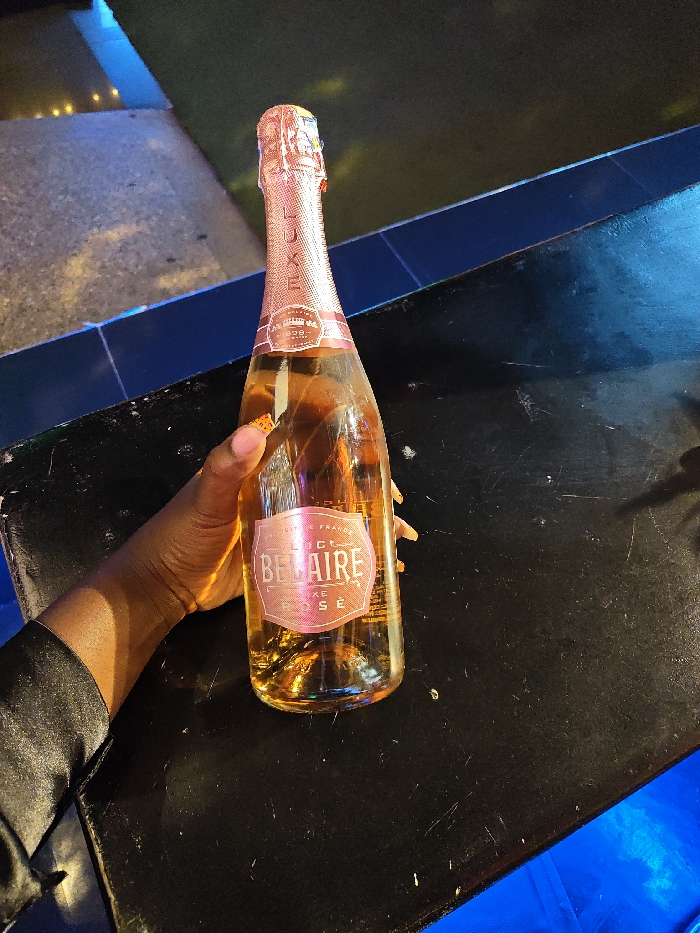 - "A hand holds a bottle of Luc Belaire Luxe Rose champagne" by FM-Ys6e53, licensed under CC BY 4.0