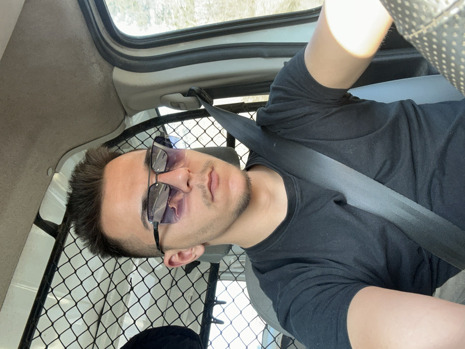 - "A young adult male, appearing to be in his late teens or early twenties, is depicted in a front-facing, waist-up portrait taken within the driver's seat of a vehicle" by FM-9BgbV2, licensed under CC BY 4.0