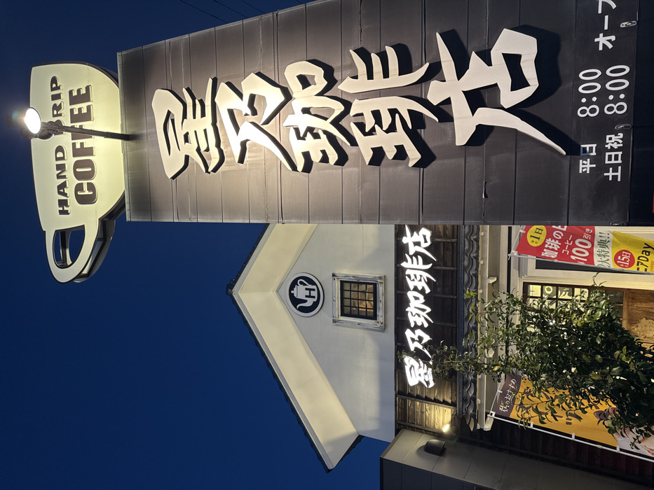 exterior of a "Hoshino Coffee" shop at night
