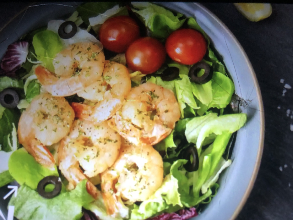 - "A high-angle, close-up photograph depicts a shrimp salad served in a light blue-grey ceramic bowl with a slightly textured rim" by FM-DZBbP2, licensed under CC BY 4.0