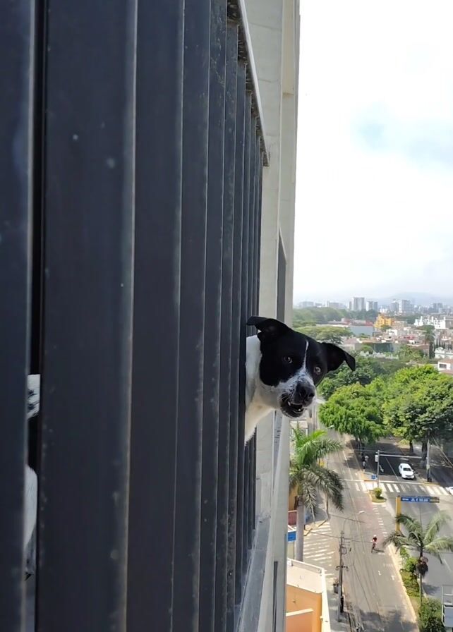 - "From a low-angle perspective, the video captures a dog barking from a high-rise balcony" by FM-Iwr2P2, licensed under CC BY 4.0