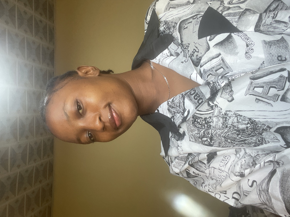 A young adult female is depicted in an indoor setting in the city of Gwafan, Nigeria