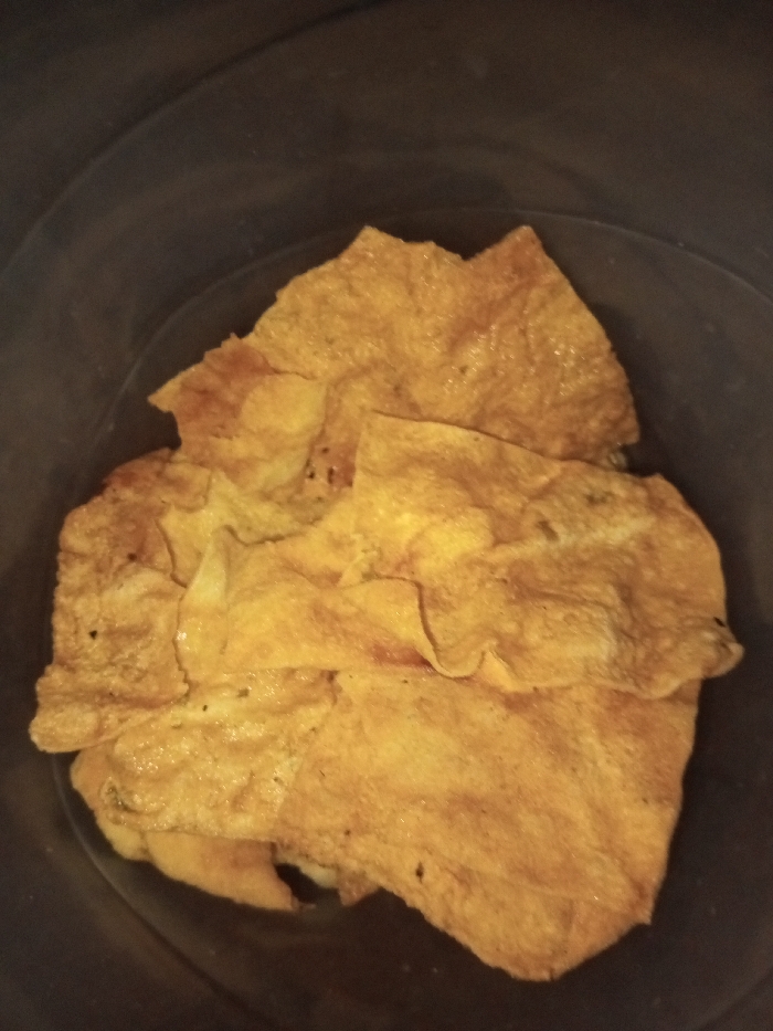- "The image depicts a pile of thin, golden-yellow omelets inside a dark container" by FM-WPxfq1, licensed under CC BY 4.0