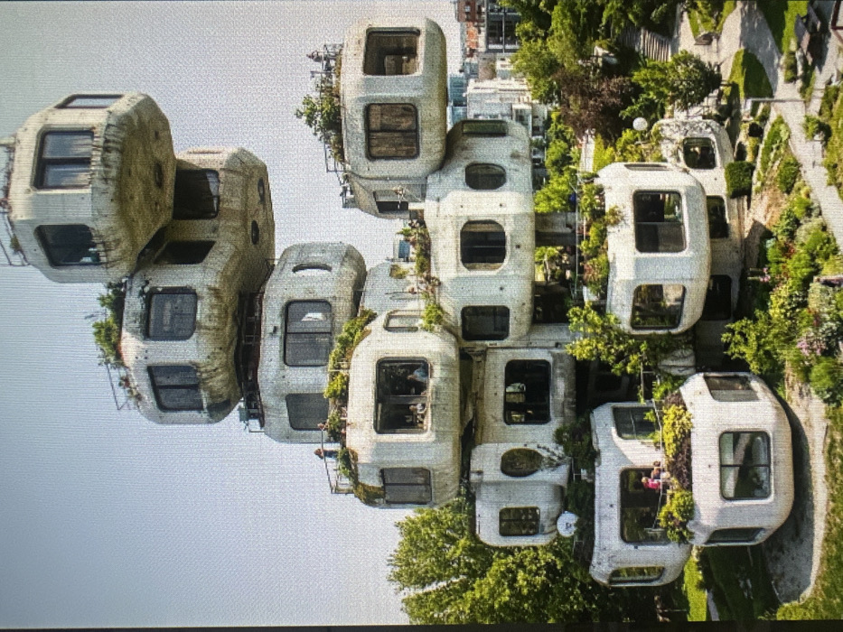 - "An aerial perspective depicts the Kapsula apartments in Budva, Montenegro, a distinctive multi-story residential complex composed of irregularly stacked and interconnected pre-fabricated concrete modules" by FM-4z7AJ2, licensed under CC BY 4.0