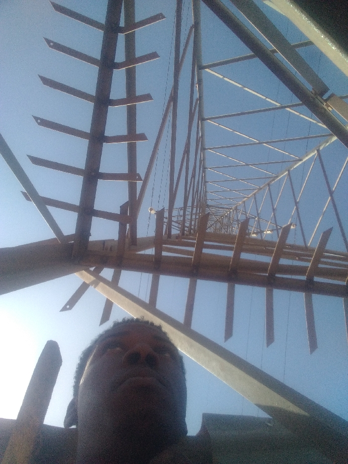 - "The image depicts a low-angle view looking upwards at a tall metal lattice tower against a clear blue sky in Jos, Nigeria" by FM-Gwf2o1, licensed under CC BY 4.0