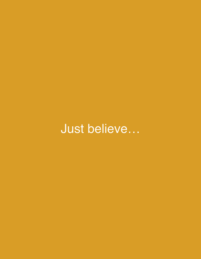 A solid mustard-yellow background fills the frame. Centered horizontally and vertically, the words "Just believe..." appear in simple, sans-serif white font. The three dots trailing the phrase add a sense of anticipation or continuation. The overall impression is minimalist and motivational.
