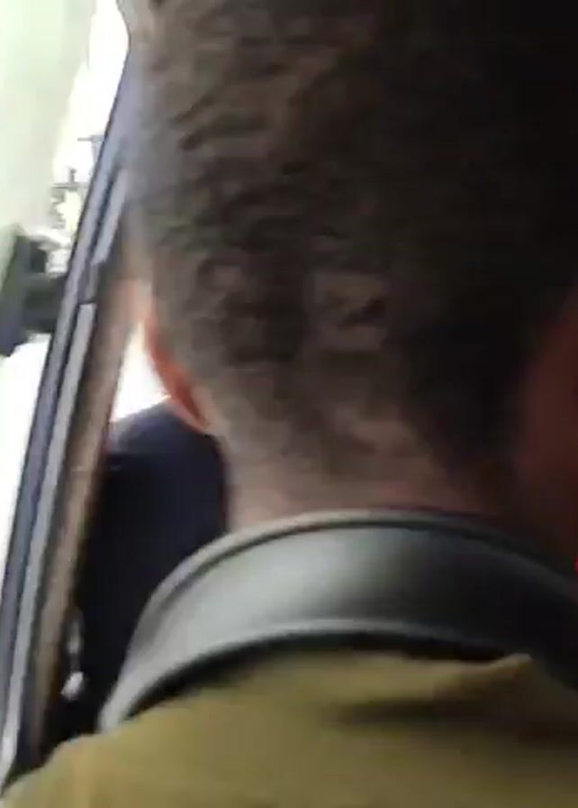 view from a moving vehicle, likely a bus or van, with several passengers inside