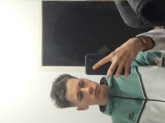 - "A young male is depicted in an indoor setting, taking a selfie using a black smartphone held in his right hand, reflected in what appears to be a mirror" by FM-I4C1x2, licensed under CC BY 4.0