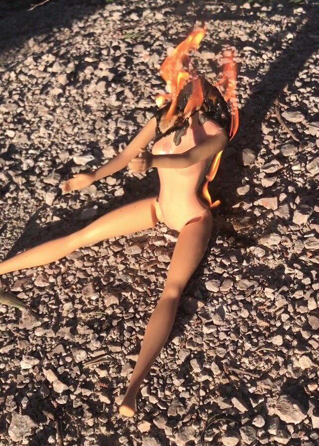 - "A pink plastic doll lies on a bed of small rocks while burning" by FM-VVwOA2, licensed under CC BY 4.0