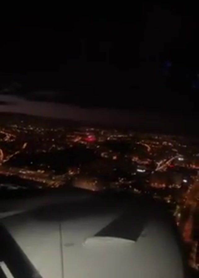 n airplane approaching a city at night
