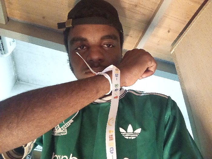 - "A man in a green Adidas shirt and black cap poses with his arm extended towards the camera" by FM-oJvmO2, licensed under CC BY 4.0