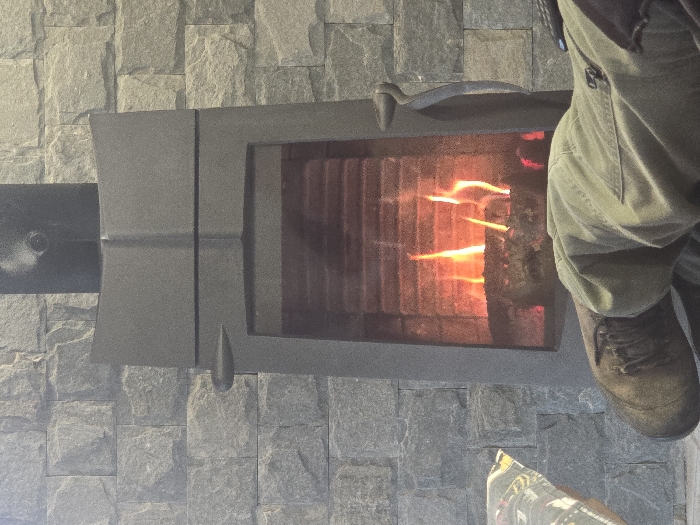 - "An interior scene in Sopot, Bulgaria, features a dark gray, freestanding wood-burning stove with an active fire visible through its glass door" by FM-LH6KY2, licensed under CC BY 4.0
