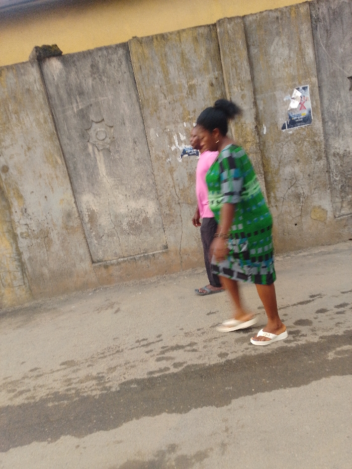 - "A woman in a green dress and white sandals walks on a wet street next to a man in a pink shirt and gray pants" by FM-vZmf83, licensed under CC BY 4.0