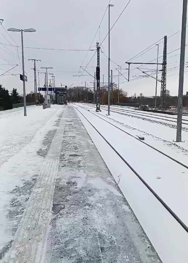 snowy train platform and tracks