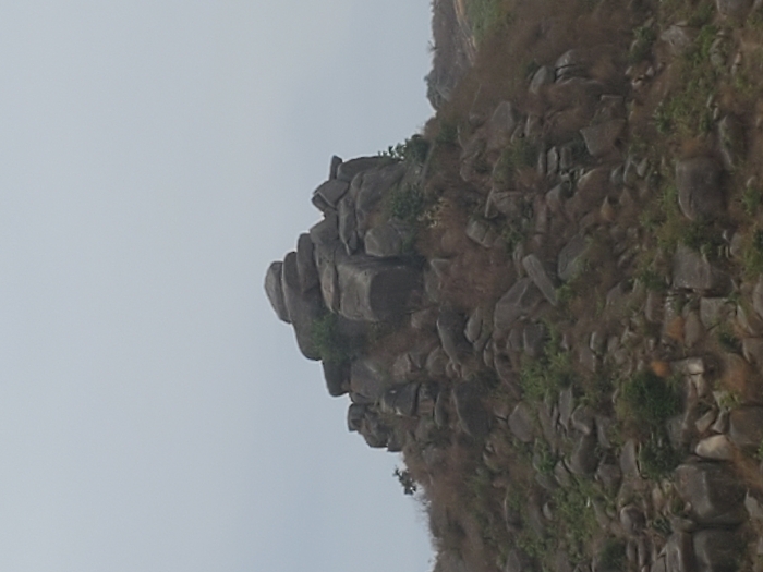 The scene depicts a rocky hill located along Rukuba Road, Nigeria, under a light grey, overcast sky