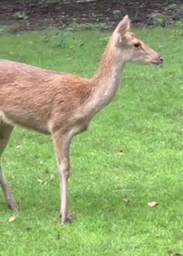 - "two Eld's deer on a grassy lawn with buildings and trees in the background" by FM-xgQP92, licensed under CC BY 4.0