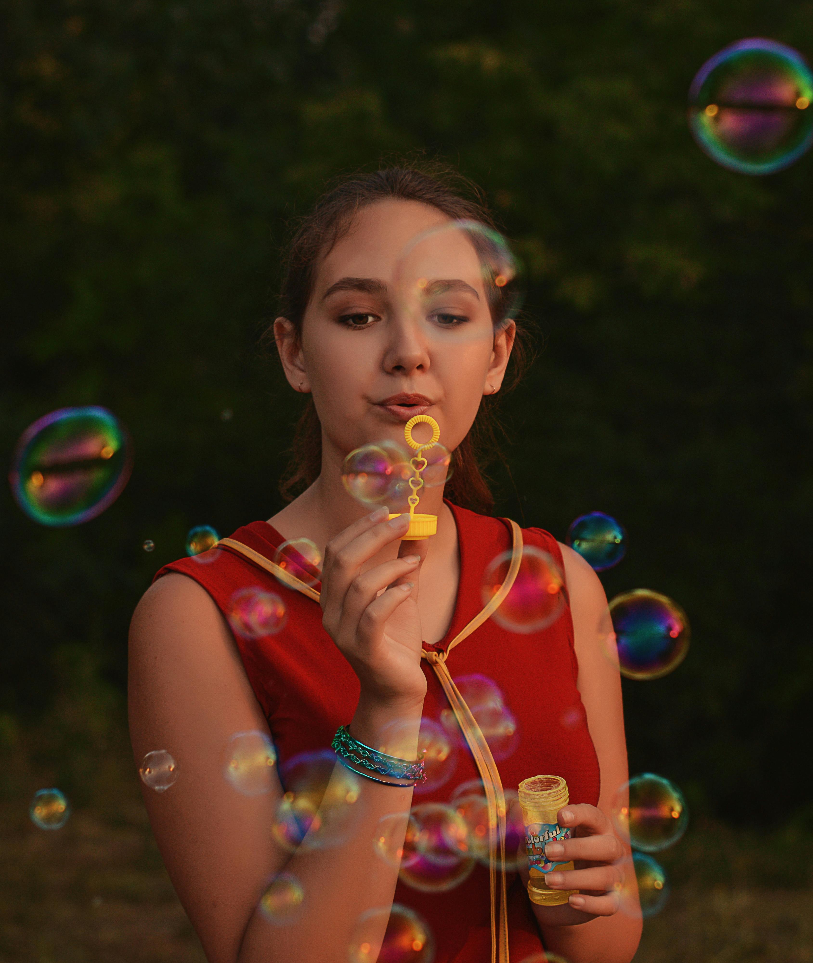 - "young woman blowing bubbles, located at the coordinates 21" by FM-3CLlI3, licensed under CC BY 4.0