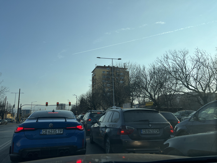 - "The image depicts a daytime urban street scene in Sofia, Bulgaria, characterized by stationary vehicular traffic" by FM-uLfUs2, licensed under CC BY 4.0