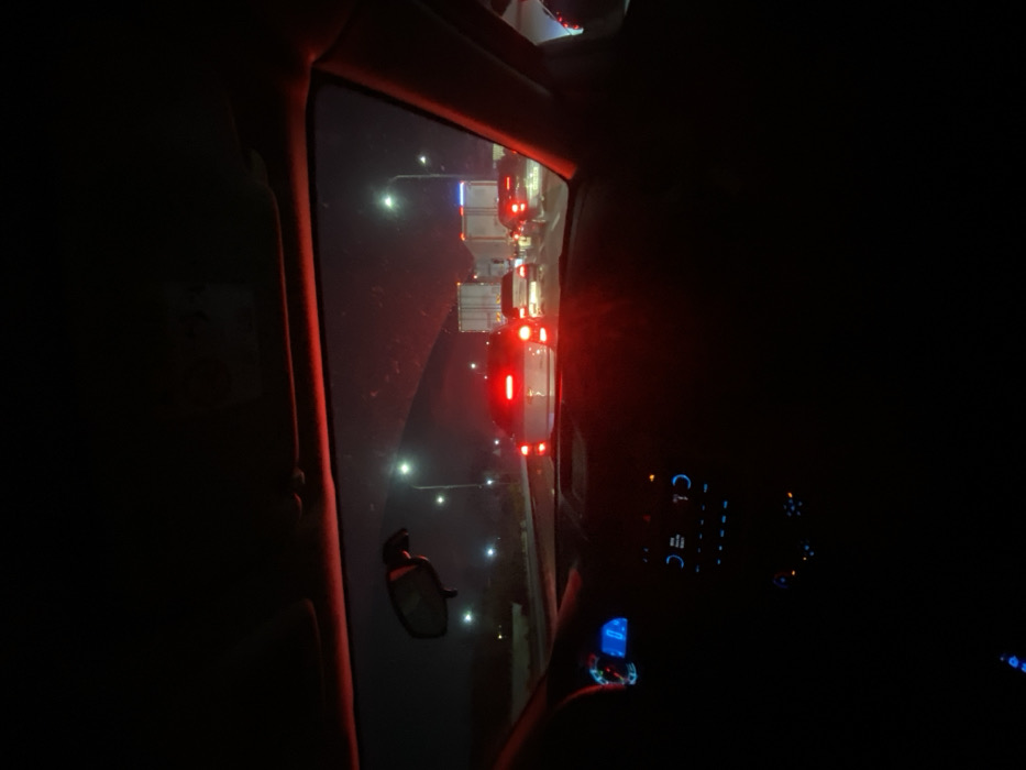 - "The image displays a nighttime scene from the interior of a vehicle, looking out through the front windshield onto a multi-lane roadway in what is presumably Samarkand City, Uzbekistan" by FM-BuXto2, licensed under CC BY 4.0