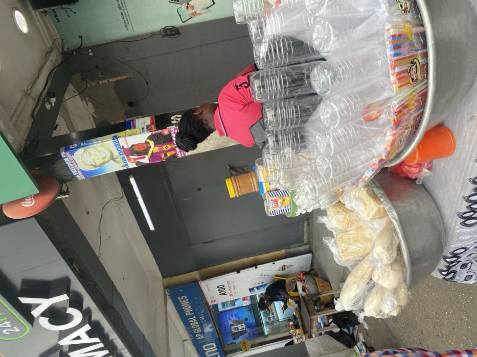 - "The image displays a street scene in Accra, Ghana, featuring a vendor stall set up in front of commercial buildings" by FM-b79C12, licensed under CC BY 4.0